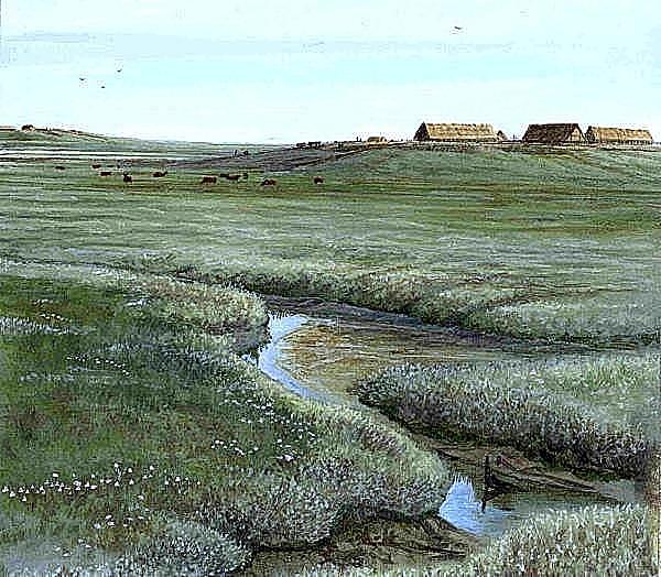 700 - 500 voor Christus De eerste mensen vestigden zich op de hoogste plekken langs de prielen en aan het wad. Het waren boeren, die Ieefden van akkerbouw en veeteelt. De huizen waren gebouwd van hout, stro en riet, en bestonden uit een woonruimte en een stal.